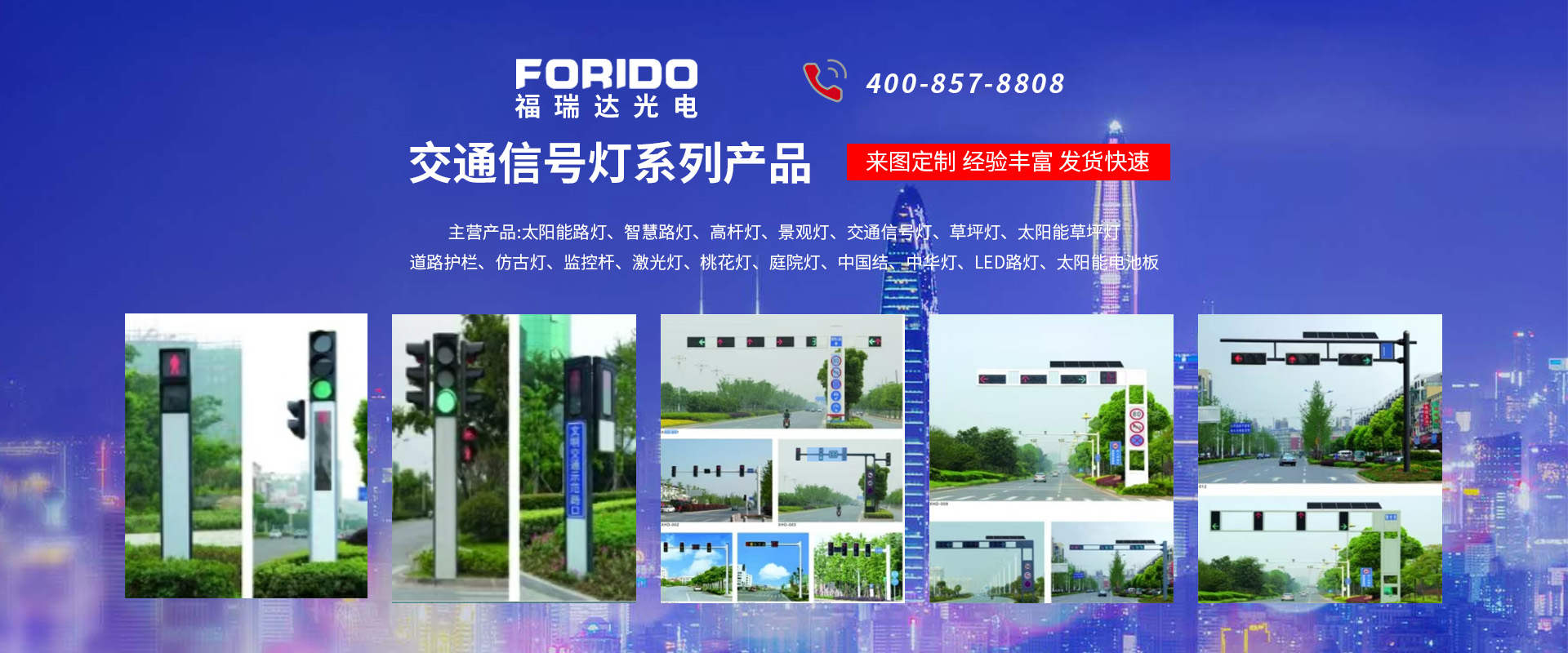 揚州福瑞達光電科技有限公司位于淮左名都歷史文化名城、中國路燈制造基地揚州市北郊菱塘工業園,公司占地面積76000平方米,注冊資金10518萬元,擁有高級技術嫻熟的員工280多人,擁有大型折彎機、激光切割、數控注塑機、壓鑄機、自動埋弧焊、氣焊、彩色粉末靜電噴塑等大型自動化設備,我公司是一家集設計、研發、生產、銷售、施工安裝服務為一體的戶外交通照明產品制造商,主要生產智慧路燈、太陽能路燈、LED路燈、高桿燈、景觀燈、交通信號燈、交通標志牌、通信鐵塔、路跨鋼結構、公交站臺、太陽能光伏組件、景點亮化、樓宇亮化工程的設計施工等。公司秉承開拓創新、銳意進取、精誠服務的企業精神,堅持以“誠信為本、技術為先、服務是金”的合作理念,我們憑借先進的制造工藝、優質的產品質量、合理的市場價格和完善的售后服務贏得了廣闊的市場和客戶的信賴。  我公司已通過ISO9001質量體系認證、ISO14001環境管理體認證,CQC產品認證,中國節能產品認證,通過“CCC”強制性產品認證,具有市政總承包,照明,交安,設計等資質···